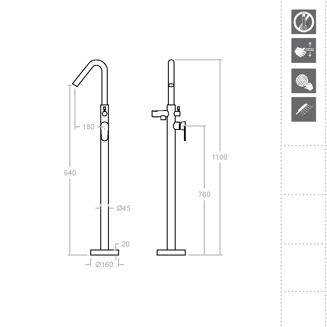 Встраивая инновации в каждую деталь, смеситель для ванны Ramonsoler Alexia напольный 368503S представляет собой выдающийся образец современного дизайна и технологий. Бренд Ramonsoler совместно с коллекцией Alexia создали продукт, который гармонично сочетается с ванной в стиле модерн, благодаря изящным прямым углам и плавным, округлым линиям.