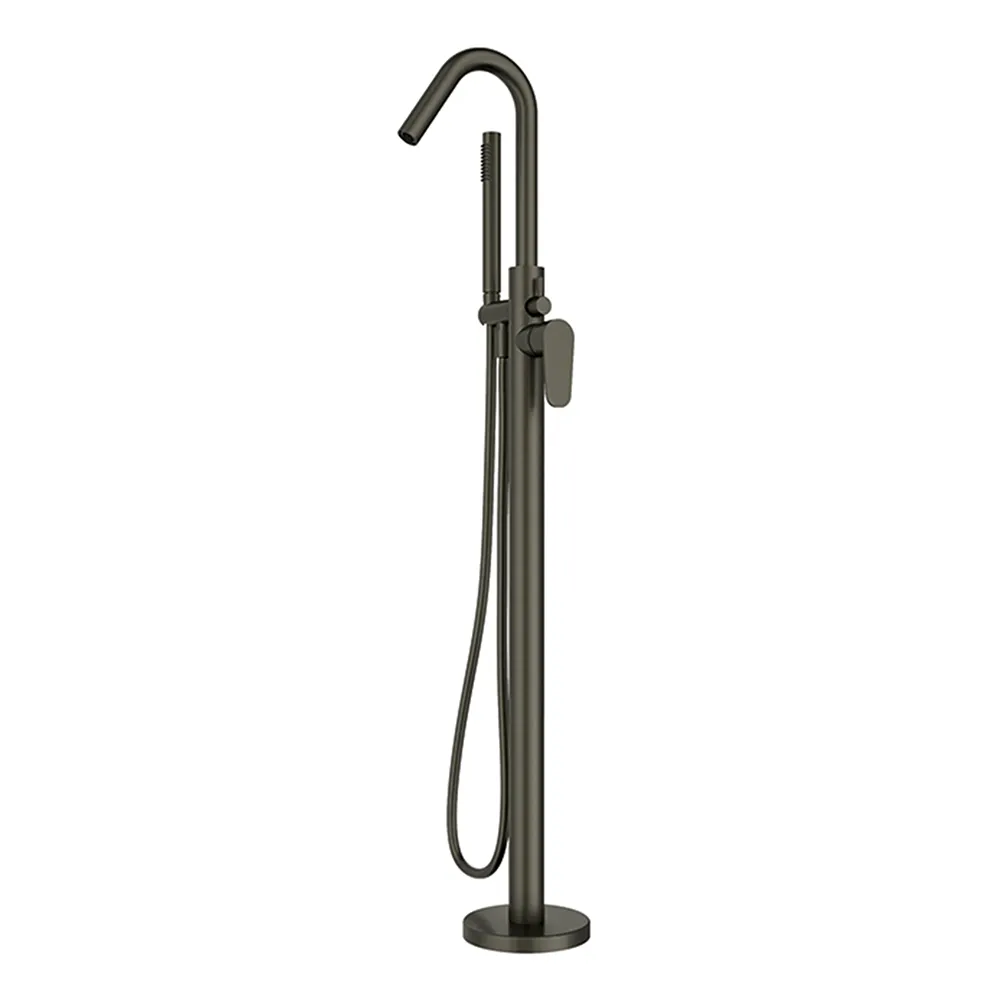 Смеситель для ванны Ramonsoler Alexia напольный с душевым комплектом графит 368503DGR — воплощение современного стиля и функциональности, идеально дополняющее дизайн вашей ванной комнаты. Серия Alexia от знаменитого бренда Ramonsoler сочетает в себе прямые углы и мягкие округлые линии, что позволяет ей органично вписаться в трендовый интерьер.