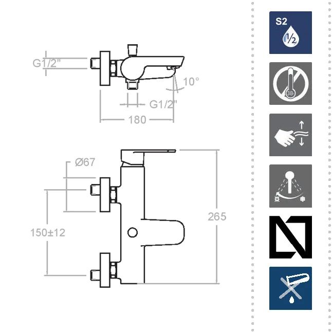 - Двуступенчатая система открытия воды S2: Это инновационное решение позволяет экономить до 50% воды без ущерба для комфорта. Переключение между уровнями открытия происходит плавно благодаря специальной системе аэрации.