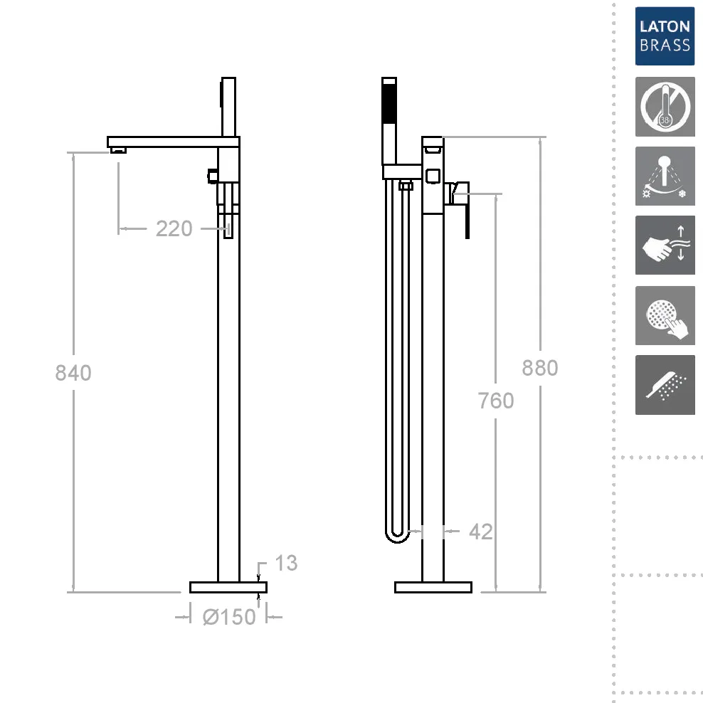 Познакомьтесь с превосходным выбором для вашей ванной комнаты — Смеситель для ванны Ramonsoler Kuatro NK напольный с душевым комплектом 498502MK. Эта модель от испанского бренда Ramonsoler из коллекции Kuatro NK станет настоящим украшением современного интерьера.