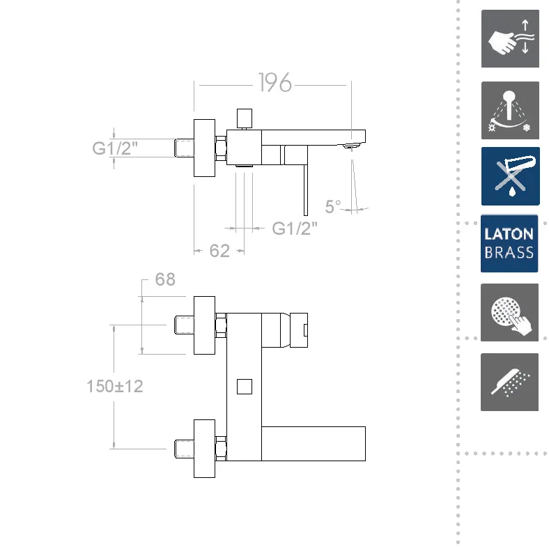 Изготовленный из хромированной латунь с никелевым покрытием толщиной 15 мкм и хромом 0,3 мкм, смеситель устойчив к гидравлическим воздействиям и выдерживает давление до 25 бар. При этом рекомендуется использовать давление в 3 бара для оптимальной работы.