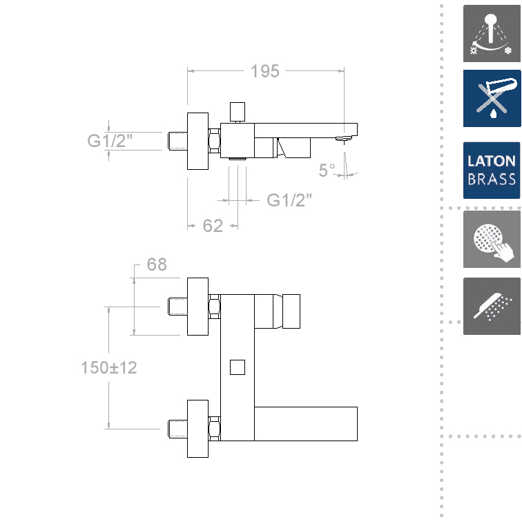 Технические характеристики также впечатляют: расход воды при 3 бар составляет 12 л/мин для душа и 20 л/мин для ванны, а уровень шума менее 20 дБ. Рекомендуемый диапазон давления от 1 до 5 бар, с оптимальным значением 3 бара, обеспечит комфортное использование при любой температуре воды.