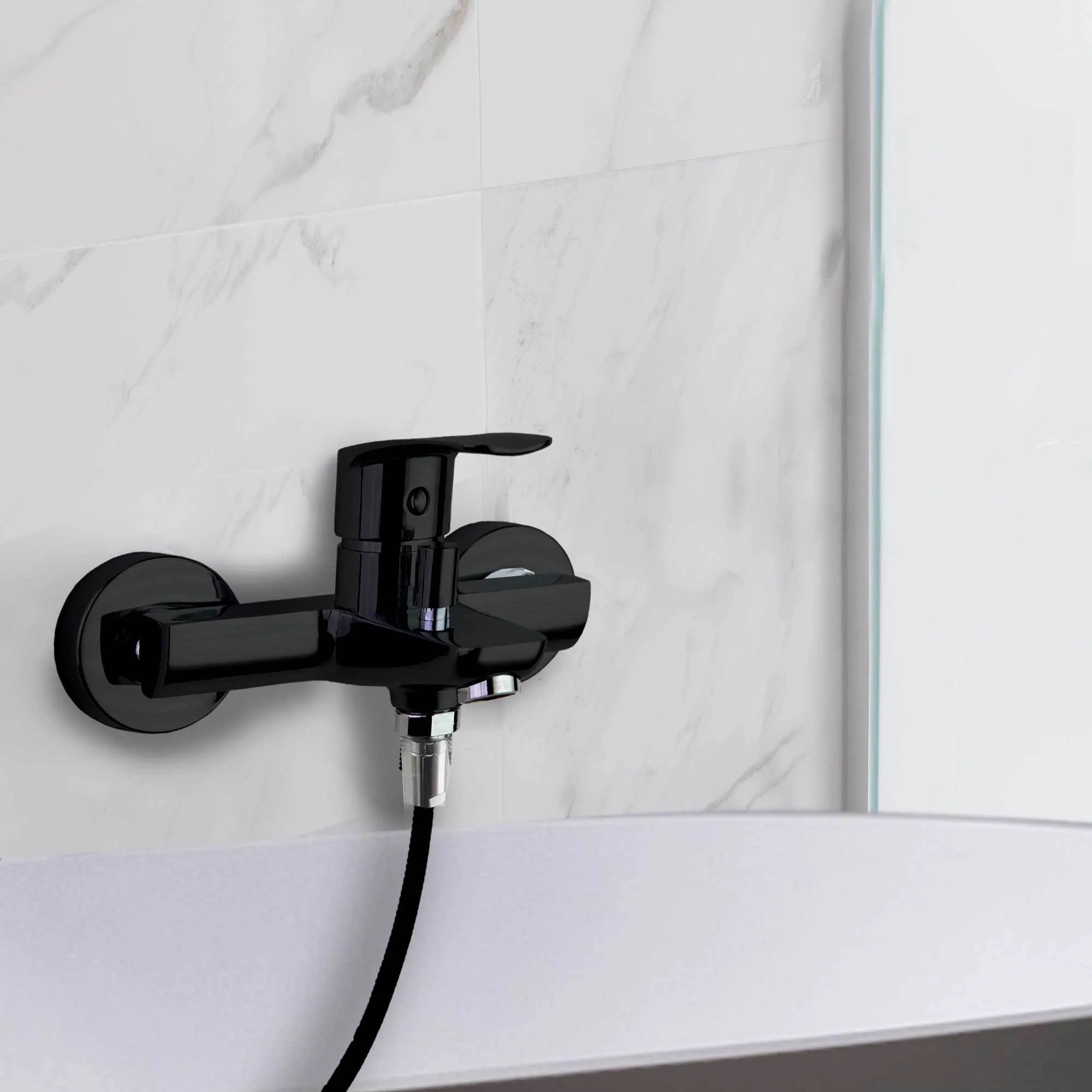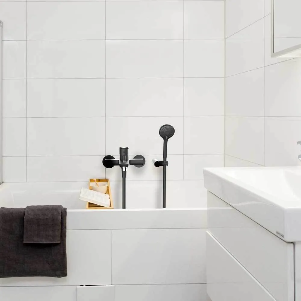 Смеситель для ванны Ramonsoler New Fly с модельным номером 570502BTNM — это пример современного инженерного искусства, который отлично впишется в вашу ванную комнату благодаря своему стильному черному матовому покрытию. Этот продукт не просто функционален, но и является украшением интерьера.
