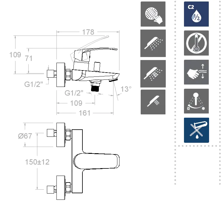 Smestell имеет уникальную систему C2 — двухступенчатую систему открытия воды, которая позволяет снизить расход до 50%, сохраняя при этом привычный комфорт использования. При этом водосберегающая технология работает настолько эффективно, что вы даже не заметите снижения потока.
