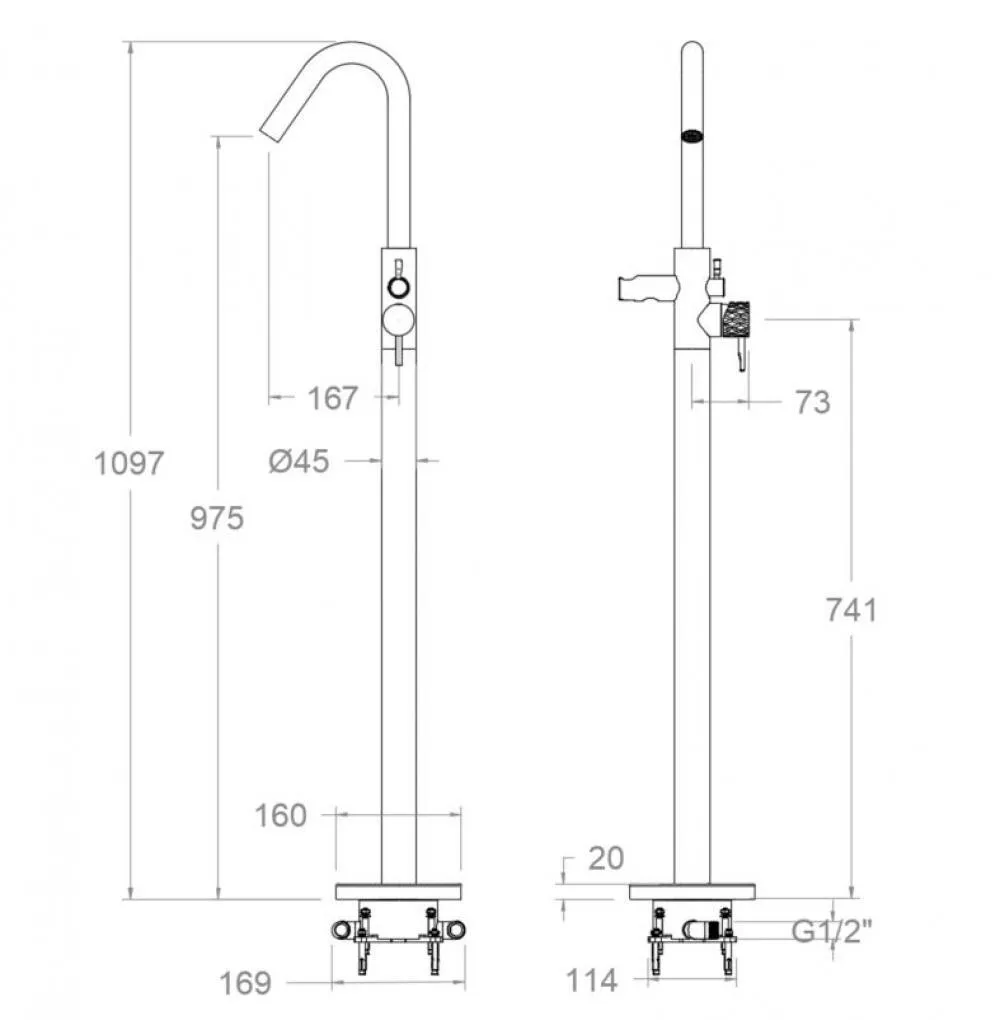 Изготовленный из латуни и покрытый благородным брашированным золотом, корпус смесителя имеет высоту 1097 мм. Он не только эстетичен, но и долговечен благодаря специализированным технологиям: