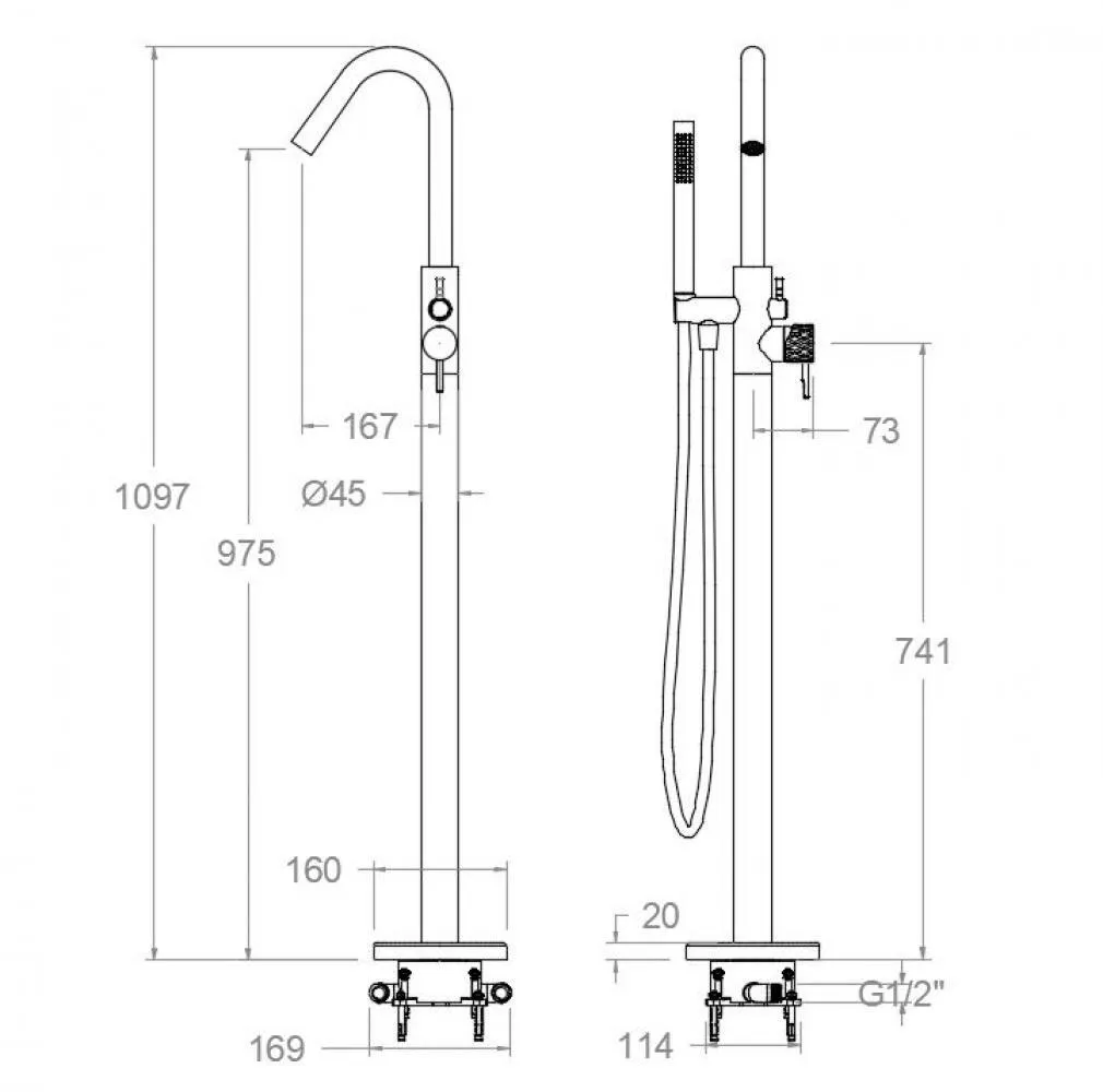 Главным элементом этого смесителя является корпус высотой 1097 мм из хромированной латуни, обеспечивающей долговечность и блеск поверхности. Смеситель оснащен керамическим картриджем 35100-2, который гарантирует плавность работы и долгий срок службы. Двухступенчатая система открытия позволяет экономить воду, что делает этот смеситель экологичным решением для вашего дома.