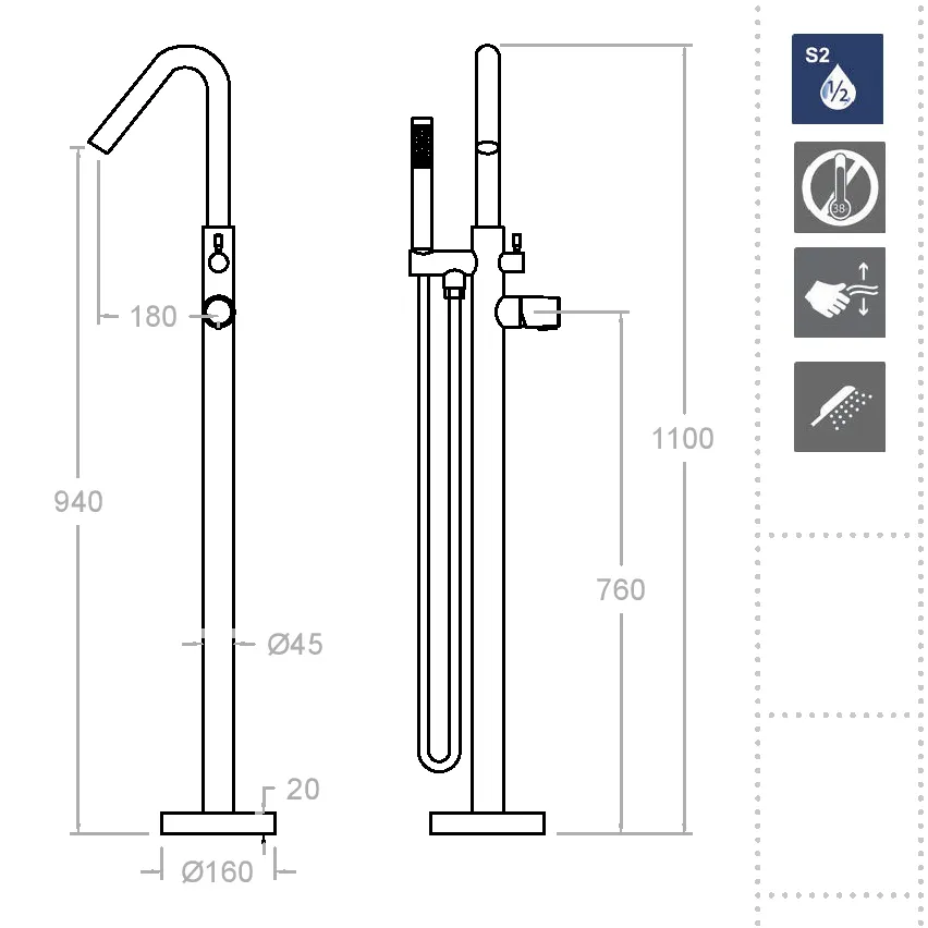 - Двуступенчатая система открытия S2 даёт возможность снизить расход воды до 50%, оставаясь максимально комфортной в использовании. Этот механизм позволяет экономить природные ресурсы, не уступая в функциональности.