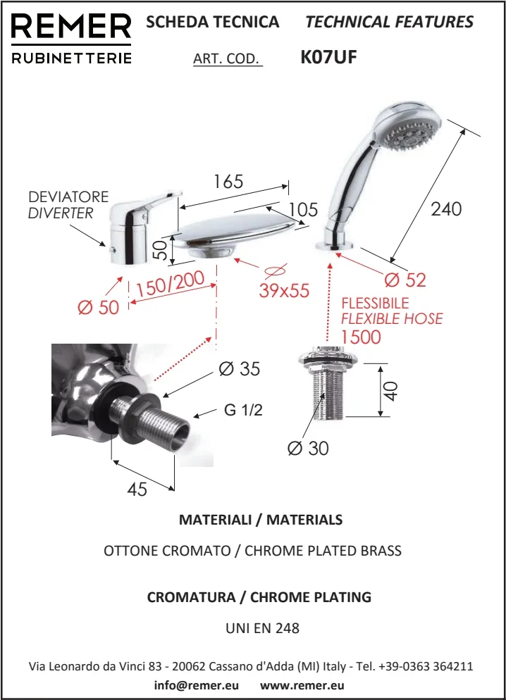 Смеситель для ванны Remer Kiss набортный хром K07UF