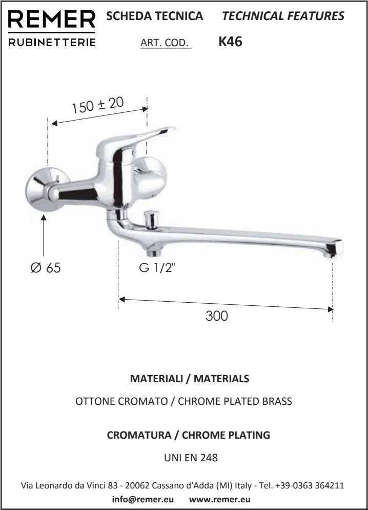 Представляем вашему вниманию смеситель для ванны из коллекции Kiss бренда Remer. Этот элегантный смеситель сочетает в себе стильный классический дизайн и функциональность. Он оснащен литым поворотным изливом длиной 30 см с переключателем душ/излив, что обеспечивает удобство в использовании. Смеситель разработан для установки на стену, что позволяет сэкономить место и обеспечить аккуратный внешний вид.