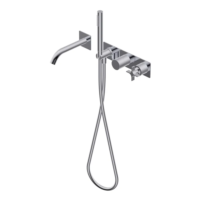 Встроенный смеситель Ritmonio Diametro35 Cross в элегантном хромированном цвете, артикул PR53EC101CRL, представляет собой современное решение для ванной комнаты. Модель оснащена переключателем на два или три потребителя, а также ручным душем, что позволяет использовать смеситель для разных нужд. Излив длиной 20 см и высотой 4.1 см обеспечивают удобство эксплуатации и элегантный внешний вид.