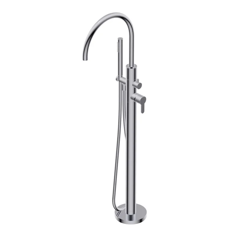 Напольный смеситель для ванны Ritmonio Diametro35 Elegance, артикул PR54DB202CRL, выполнен в элегантном хромированном цвете, привносящем современный стиль в вашу ванную комнату. Смеситель оснащен ручным душем и поворотным изливом длиной 28 см, что обеспечит вам максимальный комфорт в использовании. Высота смесителя составляет 109.1 см, а высота излива — 92.7 см, что подходит для большинства стандартных ванн. Изготавливается из прочной латуни, что гарантирует долговечность и надежность.