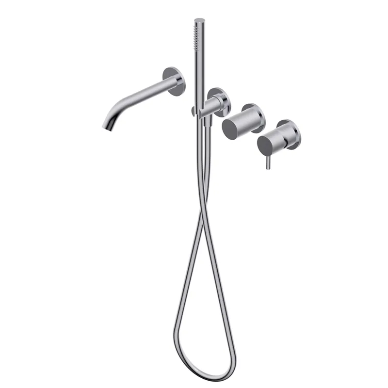 Смеситель для ванны Ritmonio Diametro35 S арт. PR52EC201IX в цвете брашированный хром — это стильная и функциональная модель, которая добавит элегантности вашей ванной комнате. Смеситель оснащен душевым комплектом и переключением для удобства использования. Излив длиной 200 мм и латунный ручной душ с диаметром 24 мм и гибким шлангом длиной 1500 мм обеспечивают удобство и надежность. Для окончательной установки в корзину необходимо добавить внутреннюю часть смесителя PM0020L.