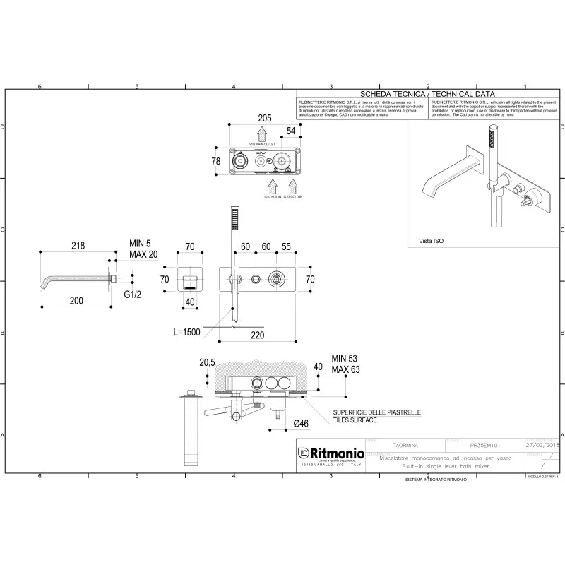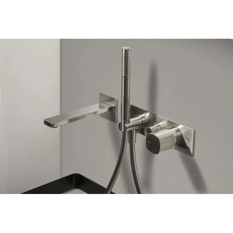 Смеситель для ванны Ritmonio Taormina арт. PR35EN101CRL в цвете хром — это надежное и стильное решение для вашей ванной комнаты. Он оснащен ручной лейкой, которая входит в комплект, обеспечивая удобство при использовании. Смеситель выполнен из высококачественной латуни и имеет фиксированный излив длиной 218 мм. Современный угловатый дизайн и встраиваемая установка делают этот смеситель отличным выбором для вашего интерьера. Для окончательной установки в корзину необходимо добавить внутреннюю часть смесителя и подходящую ручку.