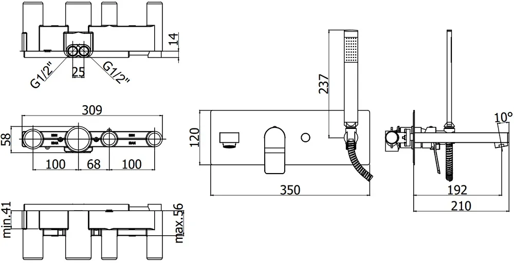 Смеситель для ванны с душем Paffoni Tilt TI001BO (с внутренней частью)