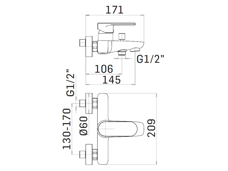 Смеситель для ванны Mamoli SADLER 1602PG29602K настенный, с душеввым гарнитуром, цвет черный матовый.