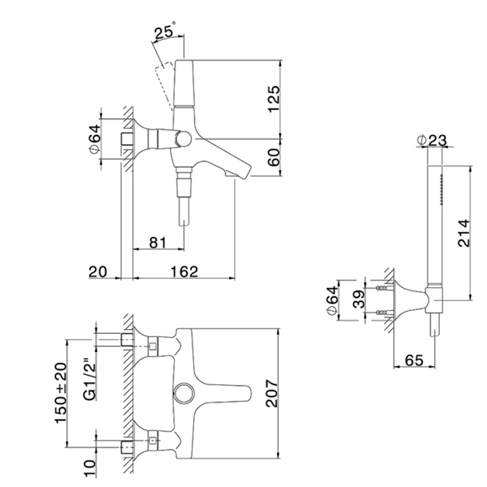 Смеситель для ванны с душевым комплектом Cisal Vita (шланг, ручной душ 1 режим, дерджатель), хром VI00010421