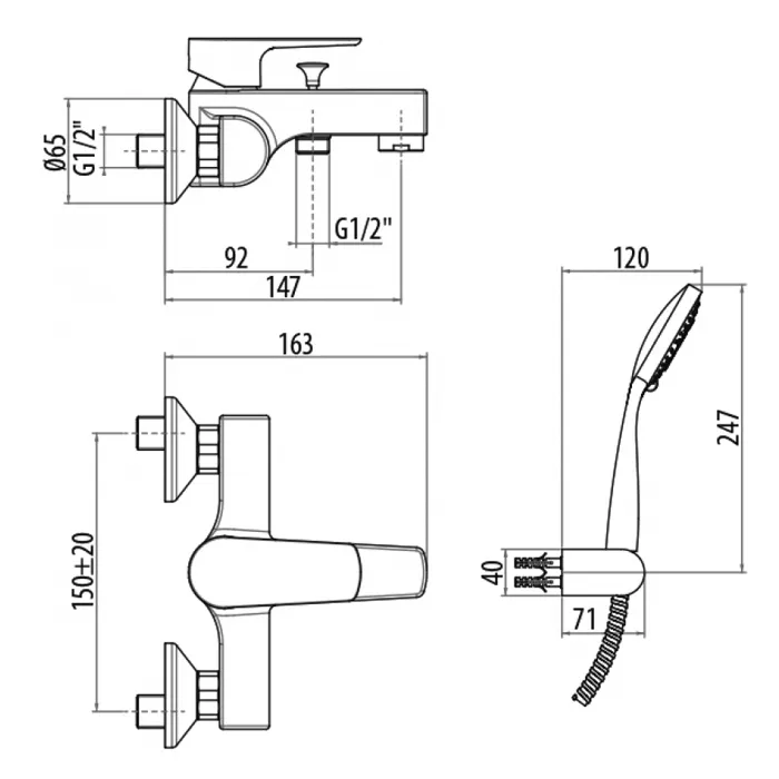 Смеситель для ванны с лейкой и шлангом Gattoni H2omix3000, хром 3000/30C0cr