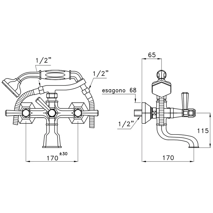 Смеситель для ванны Stella Eccelsa Leve 3274/306FB с ручным душем, золото 24К EL 02209 AU00