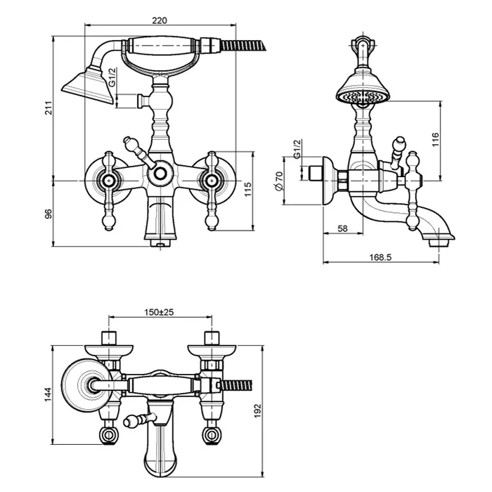 Смеситель для ванны внешнего монтажа Fima Carlo Frattini Epoque с душевым комплектом, бронза F5054BR
