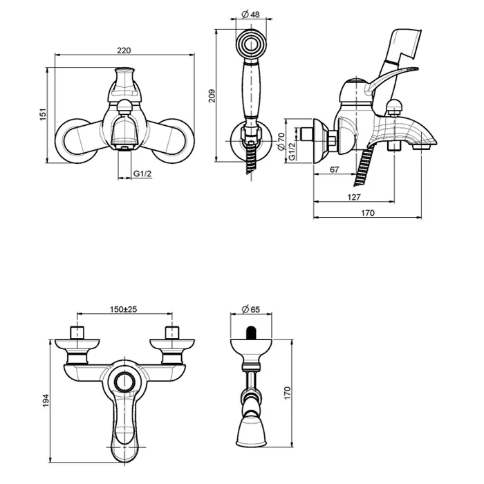 Смеситель для ванны внешнего монтажа Fima Carlo Frattini Lamp с душевым комплектом, бронза F3304BR