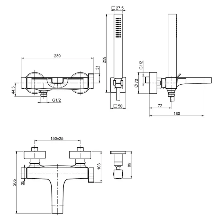 Смеситель для ванны внешнего монтажа Fima Carlo Frattini Zeta с душевым комплектом, хром F3964CR