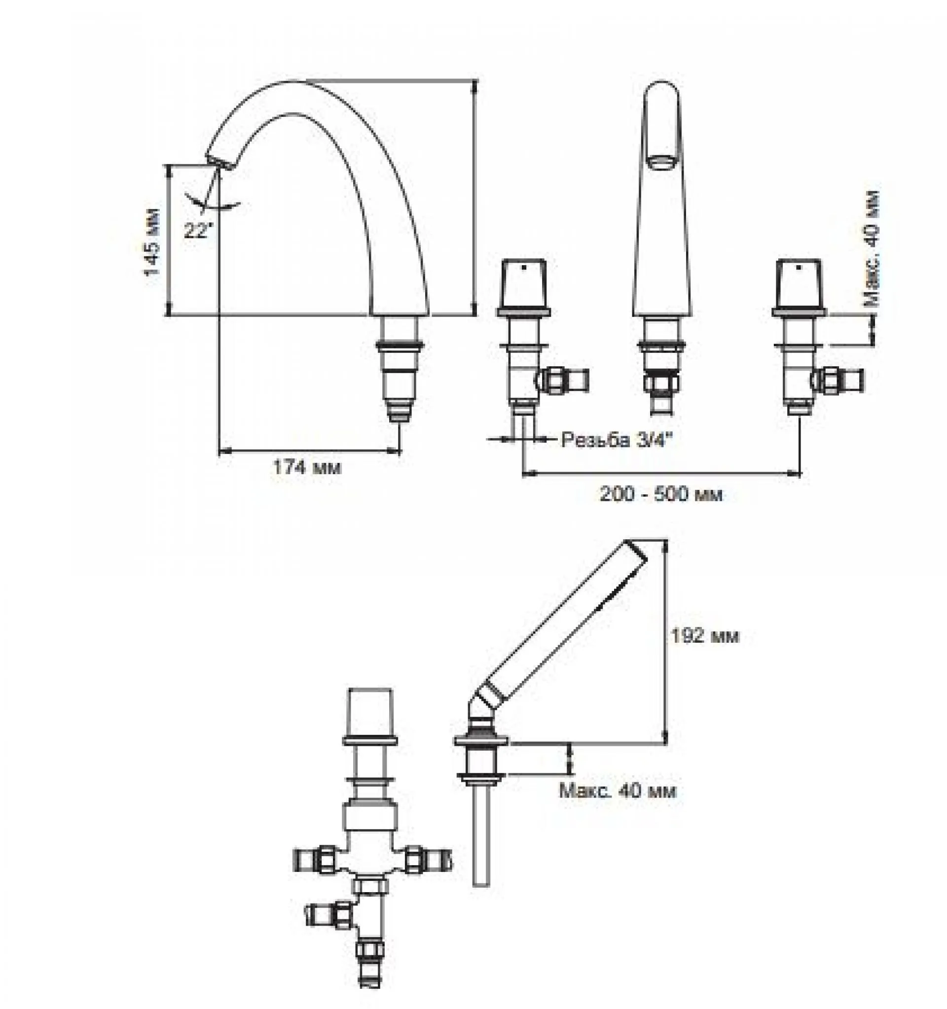 Смеситель Jacob Delafon Elevation E18876-CP на борт ванны хром