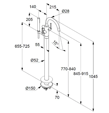 Смеситель для ванны и душа, Kludi, Nova Fonte Puristic, цвет-черный матовый