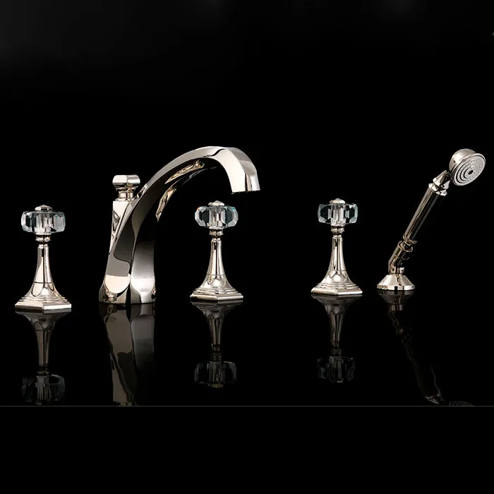 Смеситель на борт ванны Devon&Devon Excelsior Gemstone с 5 отверстиями переключателем и душем блестящий никель EXC-GM150NK