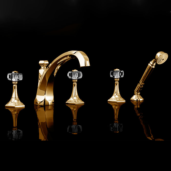 Смеситель на борт ванны Devon&Devon Excelsior Gemstone с 5 отверстиями переключателем и душем золото 24к EXC-GM150GK
