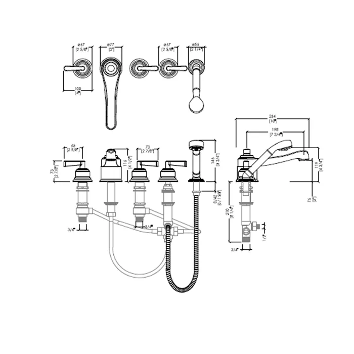 Смеситель на борт ванны Devon&Devon Manhattan на 5 выходов с переключателем и ручной лейкой никель блестящий MNH450NK
