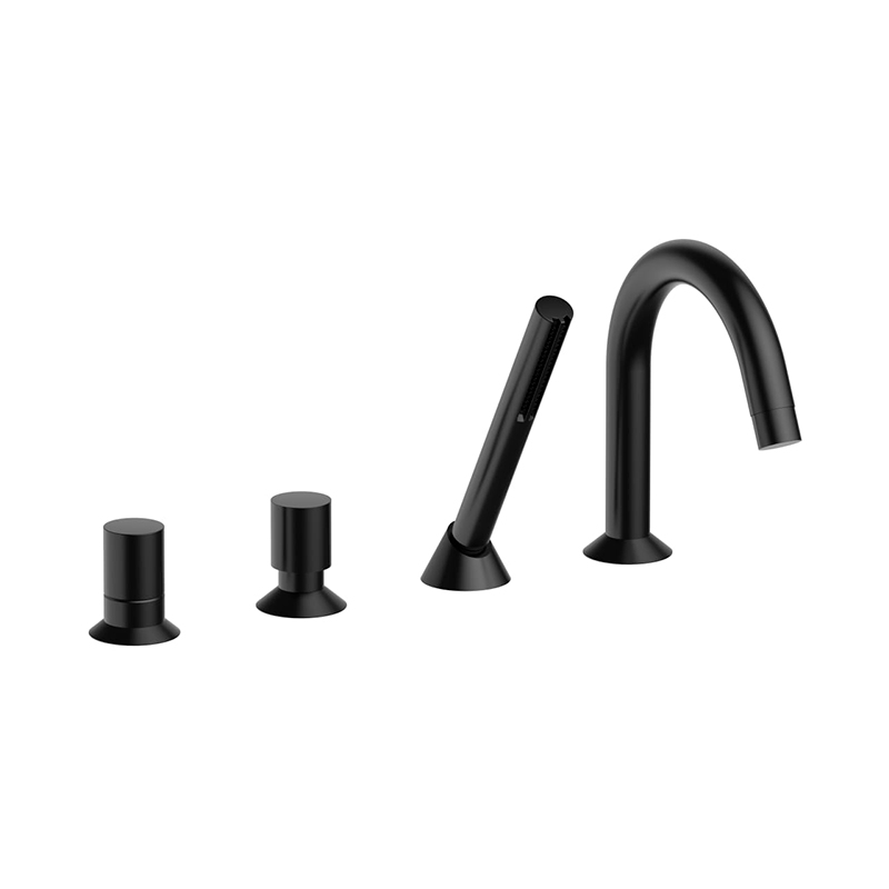 Fantini # 50131665 NOSTROMO Набортный смеситель для ванны вылет 19,5 см ручки на 4 отверстия переключатель на 2 потока с кнопкой ручная лейка SUN гибкий шланг 150 см впуски 1/2" подводка N.B. ручной душ FIT отделка PVD - Черный матовый