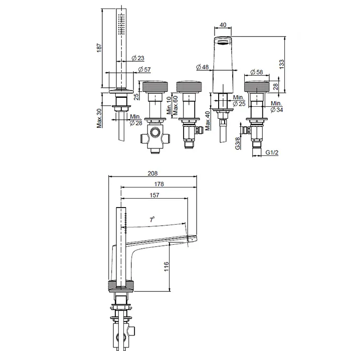 Смеситель на борт ванны Fima Carlo Frattini Texture Collection ручки H, с ручным душем и шлангом, чёрный матовый F5614HNS