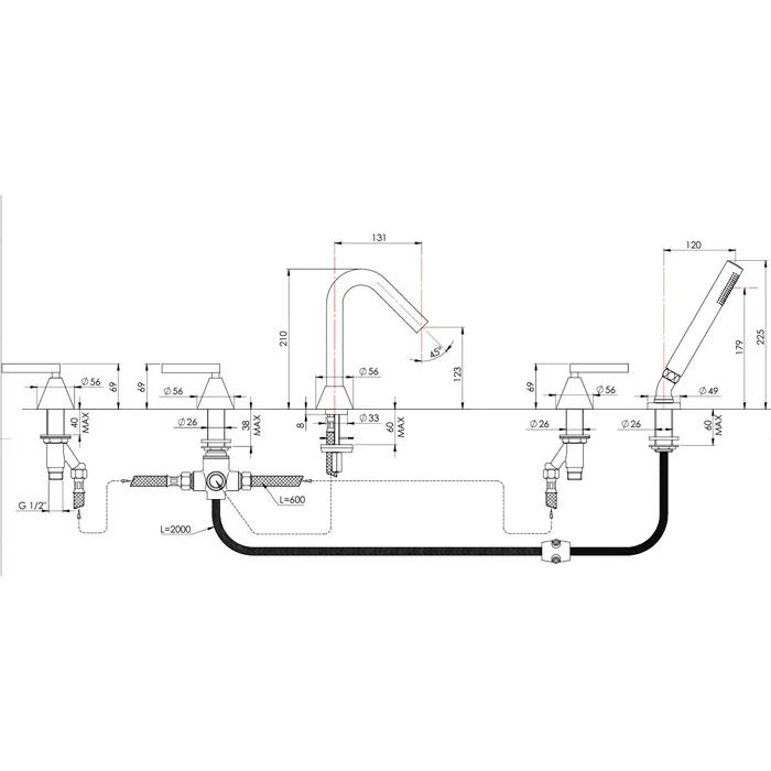 Смеситель на борт ванны Nicolazzi Flag на 5 отв, с ручной лейкой, хром 4814CR91