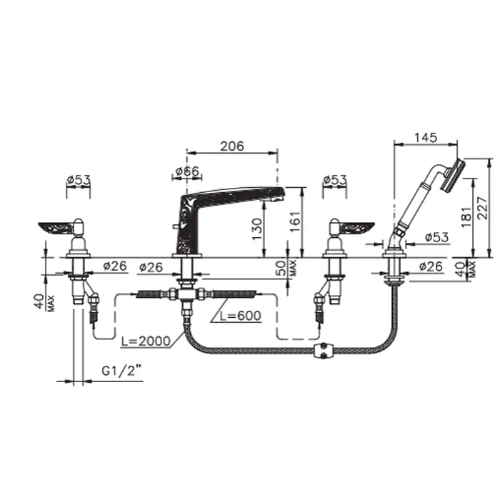 Смеситель на борт ванны Nicolazzi Liberty на 4 отв., излив: 206 мм, с ручным душем, хром 1004CR16