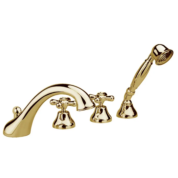 Смеситель на борт ванны Nicolazzi Nuova Brenta на 4 отверстия, с душевой лейкой, излив: 200мм, натуральная латунь 2504GO