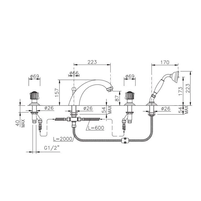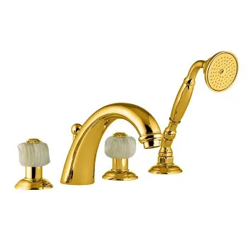 Смеситель на борт ванны Nicolazzi Onice на 4 отв., излив: 223 мм, с ручным душем, золото 2104GO09O