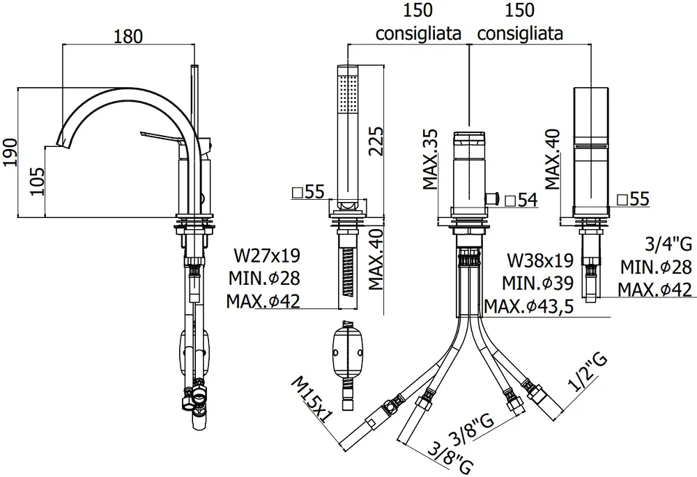 Смеситель на борт ванны Paffoni Tilt TI040BO