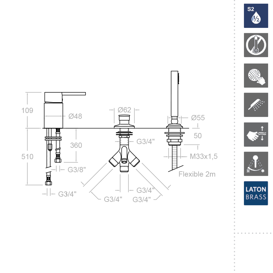Погрузитесь в мир уюта и современного дизайна вместе со смесителем на борт ванны Ramonsoler Drako без излива с душевым комплектом 333302SCAM. Это решение специально для тех, кто ценит инновации и надежность.