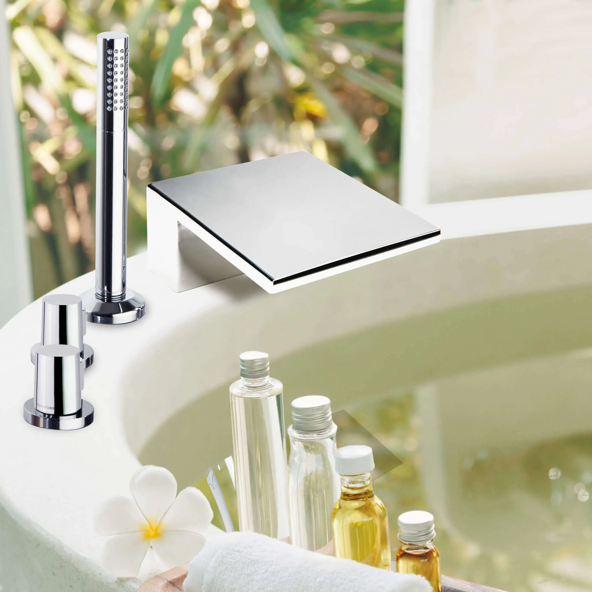Смеситель на борт ванны Ramonsoler Urban Chic термостатический с каскадным изливом и ручным душем 213303TM