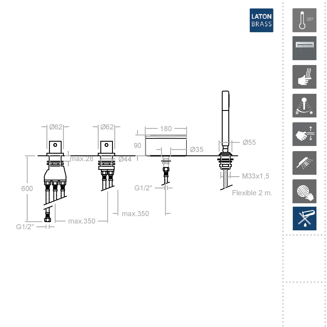 • HOTBLOCK — система, предотвращающая подачу слишком горячей воды при резком падении давления холодной воды (например, когда кто-то включил холодную воду в другом кране или произошёл слив). Эта система защищает от ожогов.