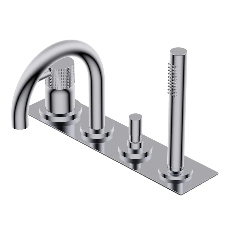 Смеситель на борт ванны Ritmonio Diametro35 Impronte арт. PR51ES102CRL в хромированном исполнении – это элегантное решение для вашей ванной комнаты. Этот встроенный смеситель на 4 отверстия на планке оснащен вентильным управлением, керамической кран-буксой и поворотным изливом. В комплект входит латунный ручной душ с гибким шлангом длиной 1800 мм, что придает дополнительный комфорт в использовании. Внешняя пластина добавляет стильности и завершенности дизайну. Для завершения установки необходимо добавить ручку для смесителя (артикул PR51MC104CRL).