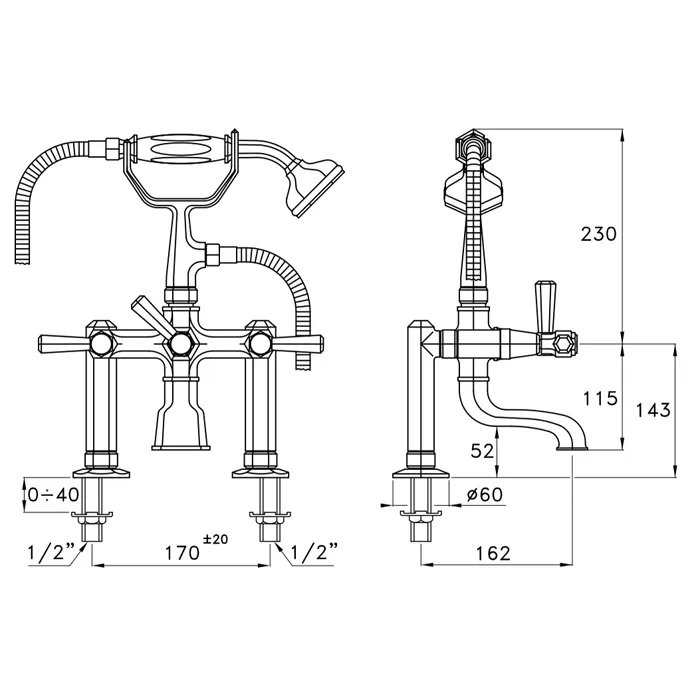 Смеситель на борт ванны Stella Eccelsa Leve на 2 отверстия 3274RG306 с ручным душем, золото 24К EL 02207 AU00