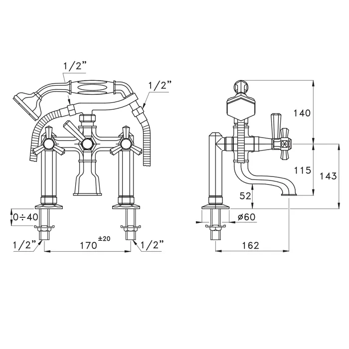 Смеситель на борт ванны Stella Eccelsa на 2 отверстия 3274RG306FB с ручным душем, золото 24К EC 02210 AU00