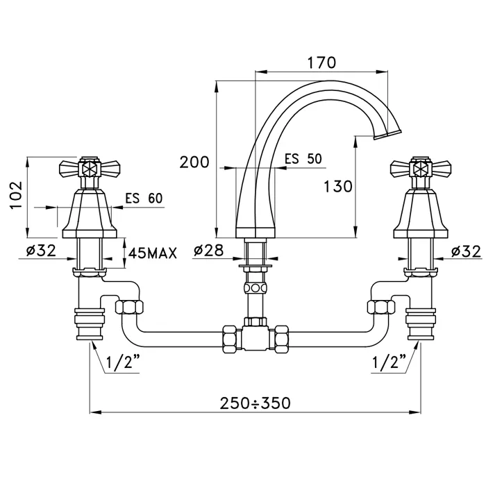 Смеситель на борт ванны Stella Eccelsa на 3 отверстия 3255, золото 24К EC 02306 AU00