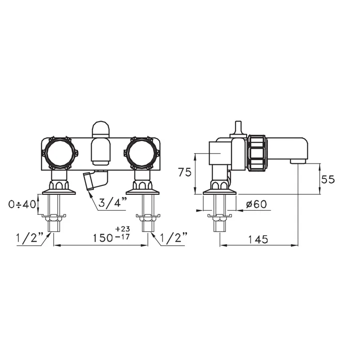 Смеситель на борт ванны Stella Timeaster на 2 отверстия 3267RG, ручка d=65 хром, ручка черная TD 02001 CR00N