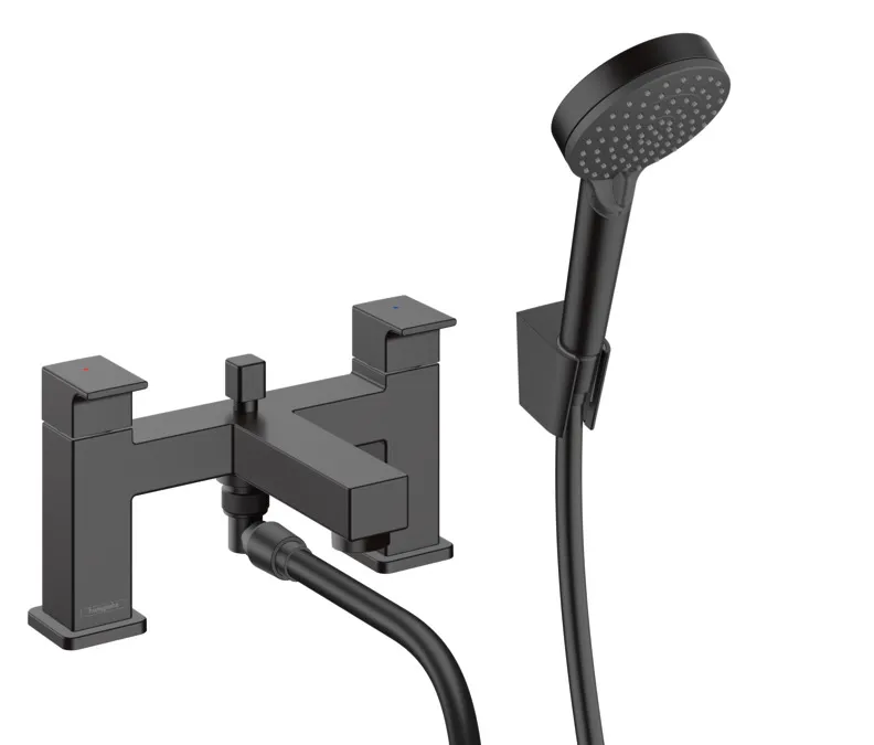 Смеситель на край ванны hansgrohe Vernis Shape 71462670, на 2 отверстия, и ручной душ