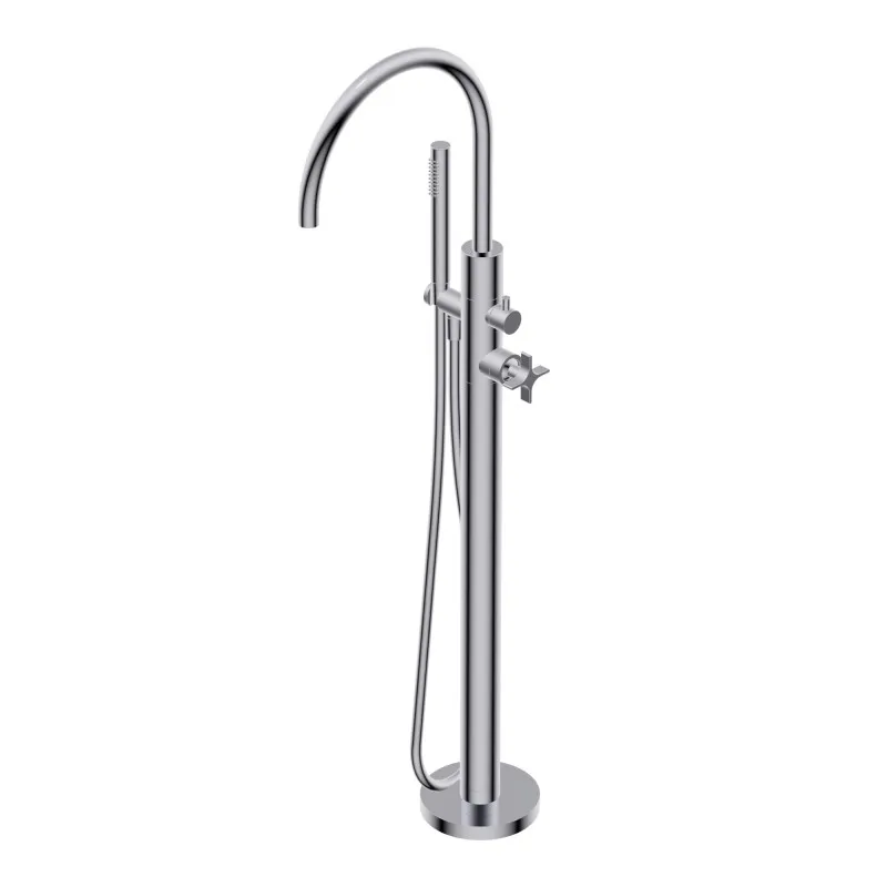 Напольный смеситель для ванны Ritmonio Diametro35 Cross арт. PR53DB202CRL в элегантном хромированном исполнении – это идеальное решение для современных ванных комнат. Смеситель имеет высоту 1091 мм и оснащен удобным ручным душем. Он обладает поворотным изливом длиной 28 см, что делает использование устройства еще более комфортным. Для установки необходимо приобрести внутреннюю часть (артикул PM00801). Этот смеситель идеально сочетает стильный внешний вид и функциональность, обеспечивая отличную работу и долговечность.
