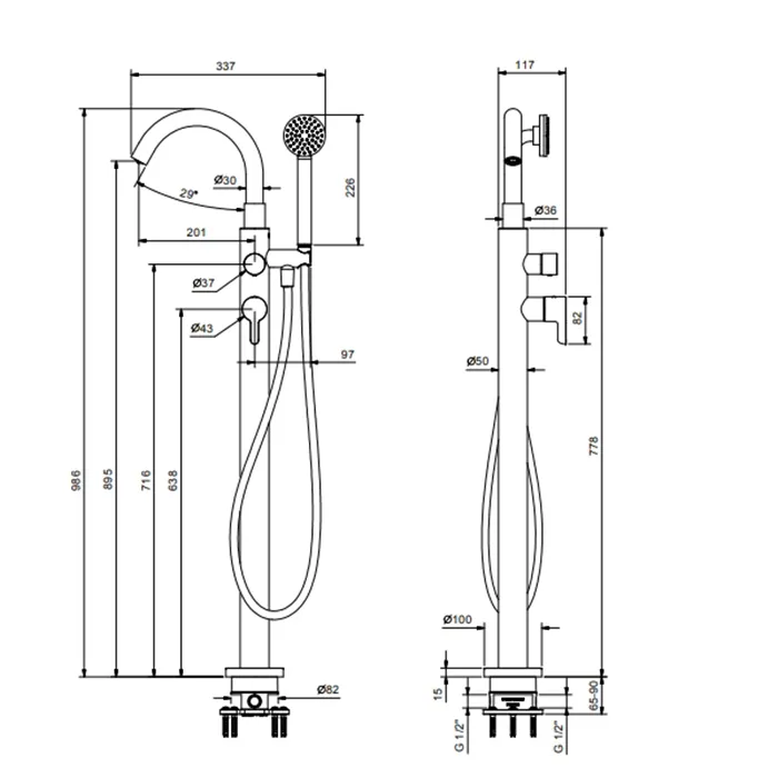 Смеситель напольный для ванны с ручной лейкой Fantini Icona Classic Matt Copper PVD 53 P9 R080B