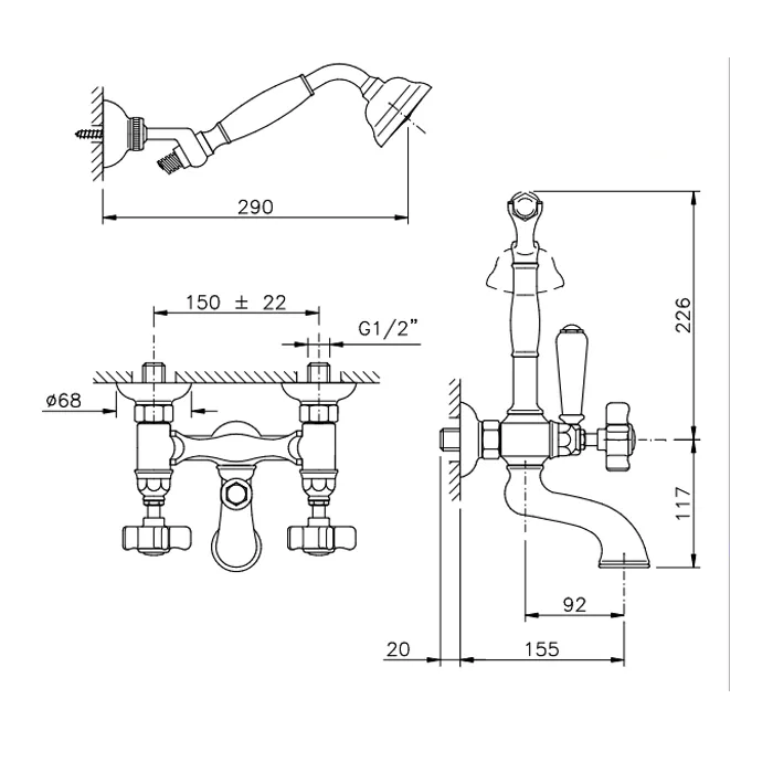 Nicolazzi 1402CR18 Смеситель для ванны с ручным душем со стены Dames Anglaises