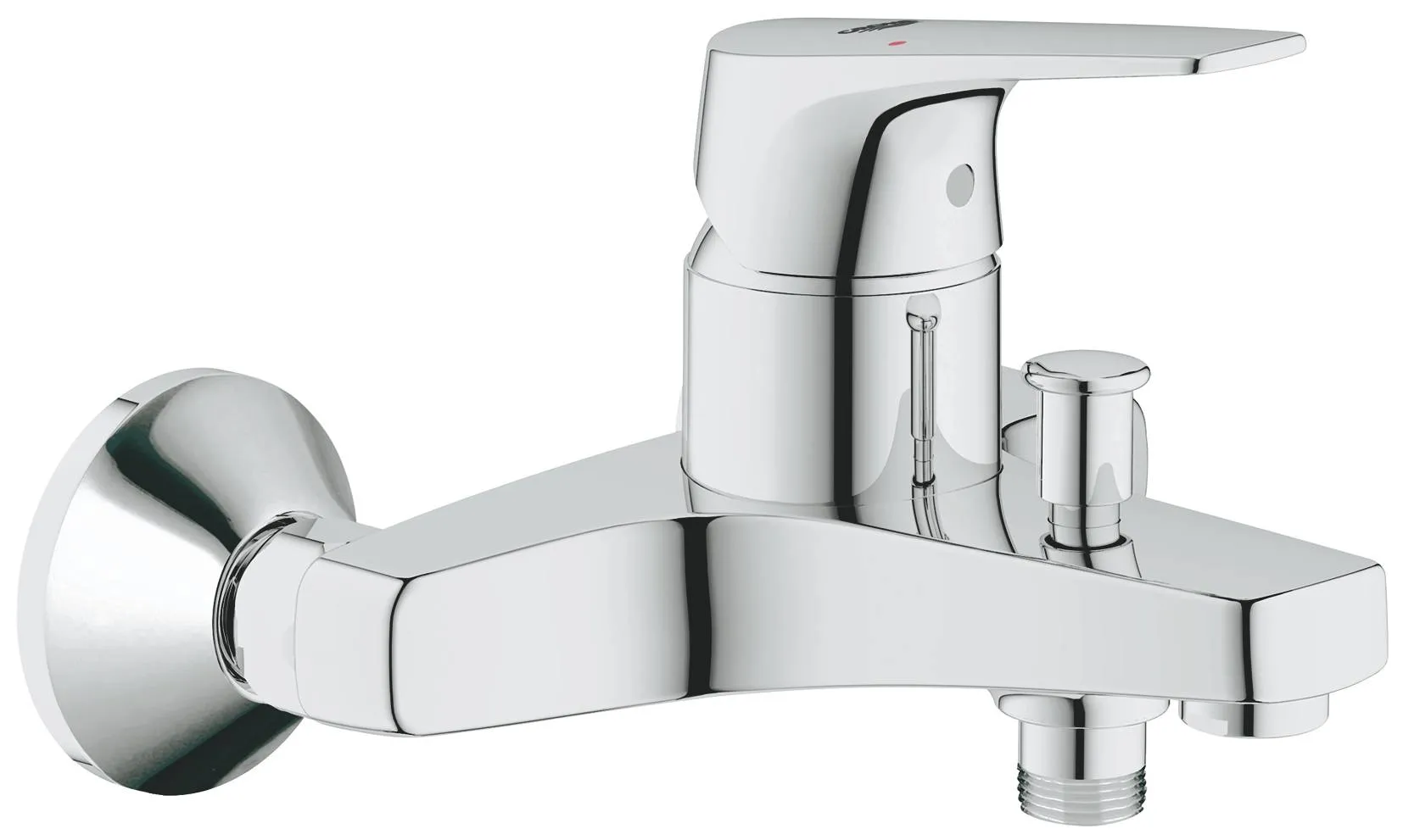 Настенный монтаж. Металлический рычаг. GROHE Longlife керамический картридж 46 мм. GROHE StarLight хромированное покрытие поверхности. Регулировка расхода воды. Автоматический переключатель: ванна/душ. Излив с аэратором. Отвод для душа снизу 1/2" со встроенным обратным клапаном. Скрытые S-образные эксцентрики. Отражатели из металла. С защитой от обратного потока.